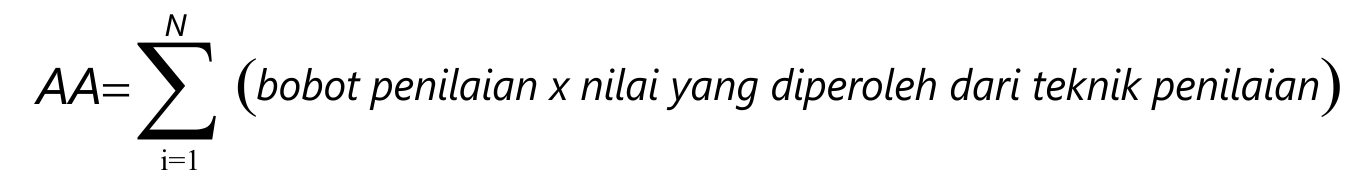 Evaluasi keberhasilan belajar Mata kuliah adalah penilaian terhadap hasil belajar mahasiswa dalam suatu Mata kuliah, yang dilakukan secara menyeluruh dan berkesinambungan dalam satu semester dengan cara yang sesuai dengan karakteristik Mata kuliah yang bersangkutan. Penilaian Evaluasi Keberhasilan mata kuliah dinyatakan dalam Angka Akhir (AA) yang dihitung dengan menggunakan rumus: