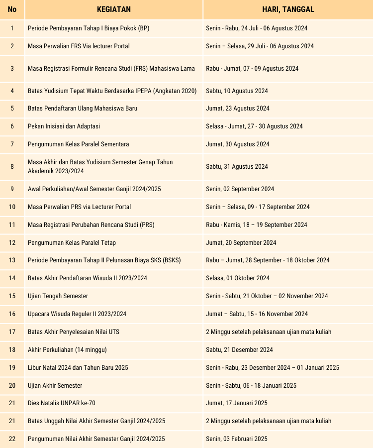 | 4 | Awal Perkuliahan Semester Pendek 2024/2025 | Senin, 30 Juni 2025 |